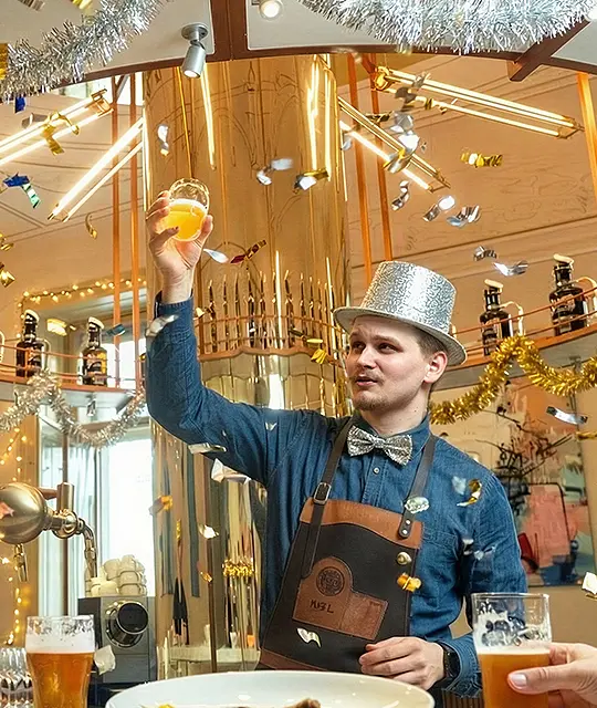 Zážitek probíhá v našem prémiovém zlatém baru s výhledem na Václavské náměstí, kde se slavnostní atmosféra snoubí s příběhy piva a novými začátky.
